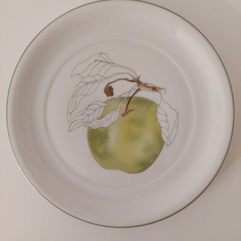 Käyttämätön, vintage Watercolors Block Spal 'Plum' by Mary Lou Goertzen 1984 lautanen. Halkaisija 20 cm.