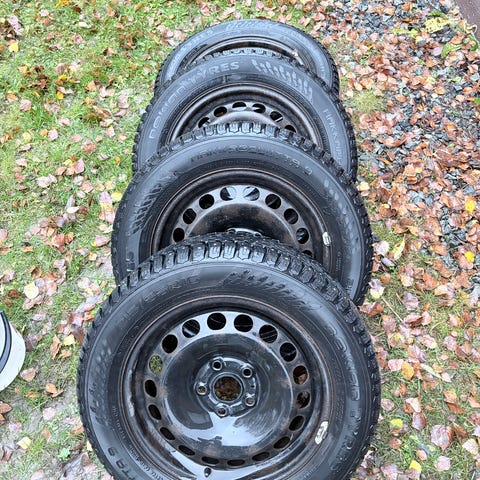 Volkswagen alkuperäiset alut joissa 2 hyvää nastarengasta ja kaks huonompaa yhdestä nastoja poikki jo paljon mut pintaa renkaissa viel 6-7mm