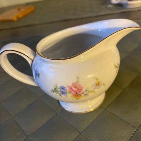 Virheettömät, vintage Rosenthal Classic Rose 'Mon Café' kermakot (2 kpl) ja sokerikko (1 kpl). Isomman kermakon korkeus kannen kanssa on 13,5 cm, tilavuus 3 dl. Pienemmän kermakon korkeus kannen kanssa on 12 cm, tilavuus 2 dl. Sokerikon korkeus kannen kanssa on n. 10 cm, halkaisija 8 cm.