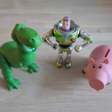 Kasa pikku hahmoja. On mm Toy Storyn Buzz Lightyear, hevonen ja ritari, pikku poro, dinosaurus, hippo jne. Kivoja vaikka joulukalenteriin.
