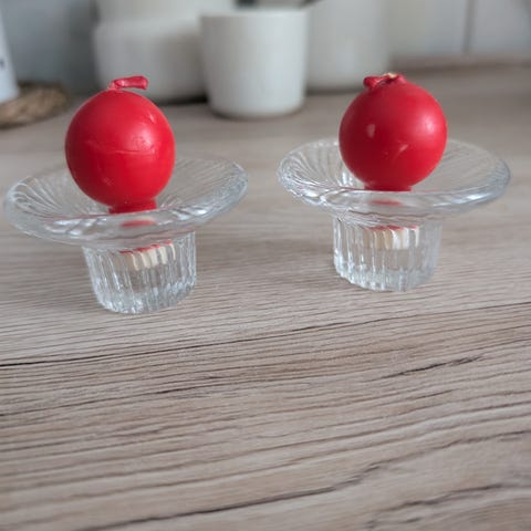 Iittalan Poppa kynttilänjalat pikkukynttilöille. Halkaisija 7 cm, korkeus 4 cm. Hinta neljälle.