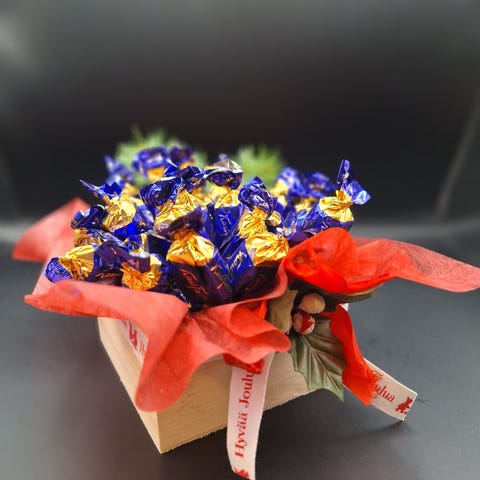 Tämä suloinen punainen samettisaapas on täynnä joulun taikaa – suklaa-Joulupukki, värikkäitä karkkeja ja ripaus joulumieltä joka suupalaan 🎄🍬
