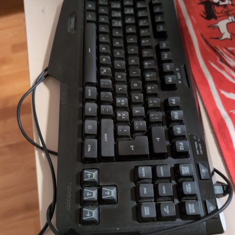Erinomaisessa kunnossa oleva Logitech G710+ pelinäppäimistö. Cherry MX Brown kytkimet. Ainoa jälki on rannetuen katkennut toinen kiinnike (kts. kuva). Tuki tosin pysyy paikallaan myös yhdellä kiinnikkeellä. Alkuperäinen pakkaus mukaan.