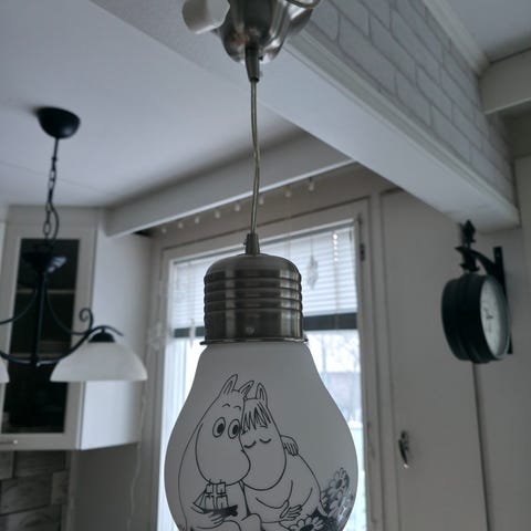 Myynnissä muutaman vuoden käytössä ollut Muumi kattovalaisin. Lamppu ei sovi enää sisustukseen joten se etsii uutta kotia.