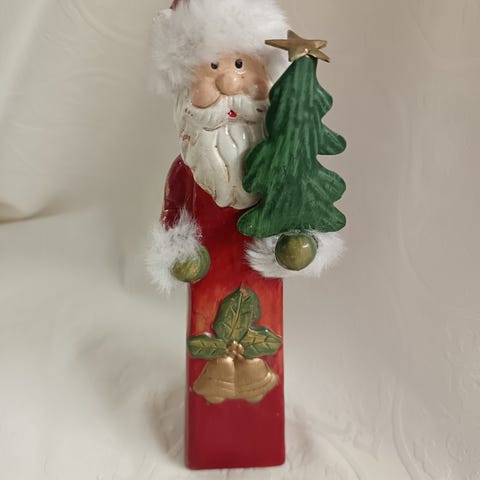 Moderni joulupukki vuodesta toiseen, valmistettu puusta, korkeus 368 mm jalustan halkaisija 88 mm, syvyys 18 mm