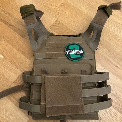 Musta verkkopohjainen (Airsoft) taisteluliivi, jossa pikasäädöt pituudelle ja leveydelle (todella reilusti säätövaraa). Liivejä kaksi, hinta 25eur/kpl tai 40eur/2kpl. Toisen liivin selkäverkossa muutamia reikiä.