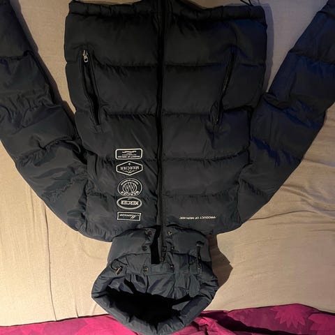 Myytävänä miesten takki koko M., merkki D&B Supply. Valmistettu Ruotsissa. Tikattu lämmin vuori, kevyt toppaus, huppu vuorattu keinoturkilla. Vettä hylkivä kangas, suojaa tuulelta. Taskun päällä näkyy merkki.