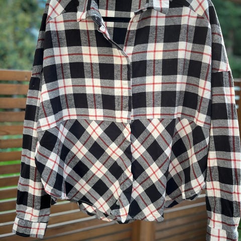 Monkin S-kokoinen oversized pusero. Suloiset oranssit napit. Värikäs kukkakuvio.