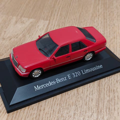 Hieno harmaa farkku W124 pienoismalli paketissa. Koko 1:43. Siistissä kunnossa.