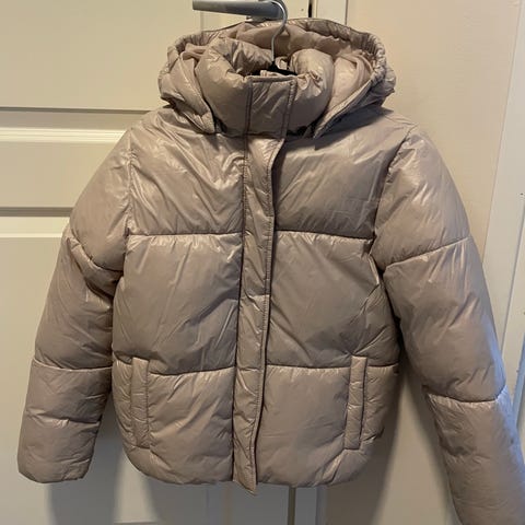 Muutaman kerran kunnon pakkaskelillä käytetty, joten kunnoltaan lähes uudenveroinen. Tosi kivanvärinen khakin vihreä.