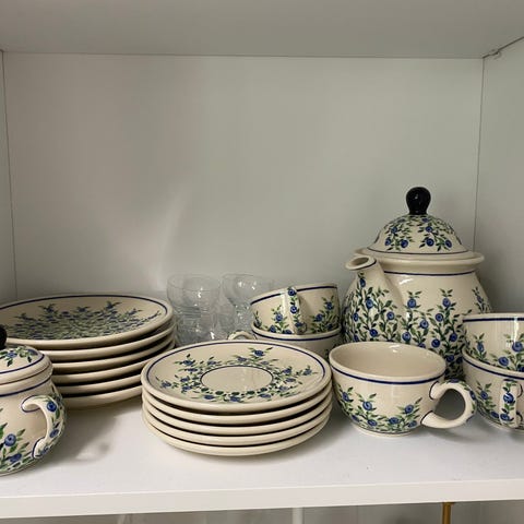 siisti ja hyväkuntoinen 6-osainen BOLESTAWIEC-kahvisetti, käsintehty Puolassa