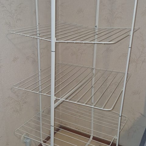 Myydään musta metallinen pyykinkuivausteline oveen. Ehjä, siisti. 3 ripustus tasoa. Paristi käytetty.