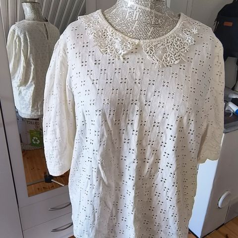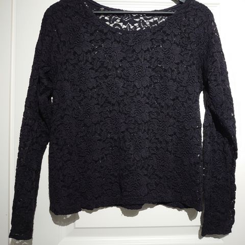 Käyttöä nähnyt viininpunainen goottihenkinen pitsipaita röyhelöhelmalla. Koko noin S / niukka M.