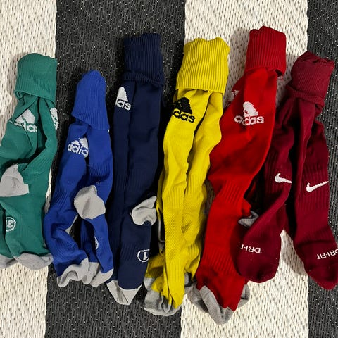 Adidas jalkapallosukat mustassa värissä. Kaikki kokoa 2 eli n. 37-39. Yhteensä 8 paria + yksi pariton. Osassa väri haalistunut hieman pesussa, mutta muuten hyväkuntoisia.