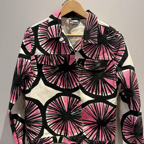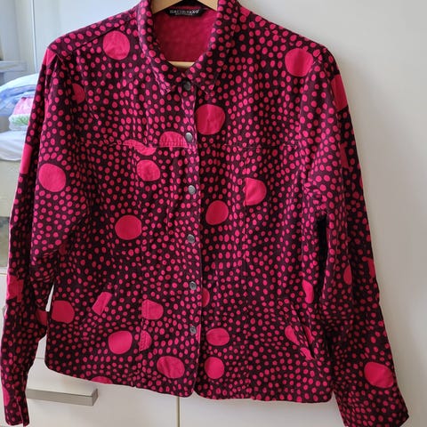 Siisti, vähän käytetty, puna-musta Pippurikerä (Mika Piirainen) takki, vakosamettia, painonapit, taskut. Kai-kai n.54cm, olka-helma n. 62cm.