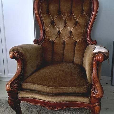 Vanha nojatuoli hyvä kuntoinen korkea selkänoja selkänojassa tyyny matalan mallinen lemmikki talous saa tarjota KÄTEISKAUPPA