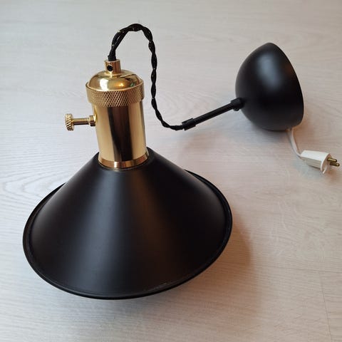 clas ohlson ceiling lamp with a metal frame and golden color. Simple and modern design with a ring-shaped frame and visible bulb. Suitable for indoor use and to highlight the lighting of the space.