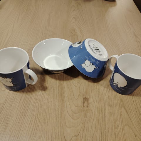 Arabia Muumi astioita 2 kuppia ja yksi kulho. Muualla ~60€
