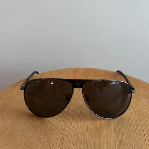 Armani Aviator-tyyliset miesten aurinkolasit, joissa on ruskeat linssit ja metallinen kehys. Sopivat suojaamaan silmiä auringonvalolta ja täydentämään asua.