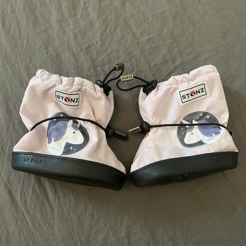 Siistit Stonz-saappaat, koko 7, vastaa kokoa 23, Uudenveroiset ja yleisilme on siisti. Kärjessä ja jossain kohdin havaittavissa käytönjälkiä sekä pieni naarmu. Pitävät vettä ja oivat loskakeleillä sekä viileneviin säihin. Sisällä ihana lämmin vuori. Tarrakiinnitys ja tarrat pitävät. Koiratalous