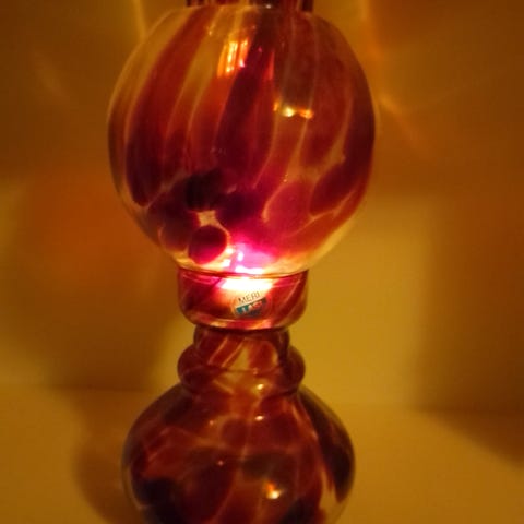 Metallinen tuikkukynttilä teline jossa on 6 vihreää lasista tuikkukynttilä kuppia.
