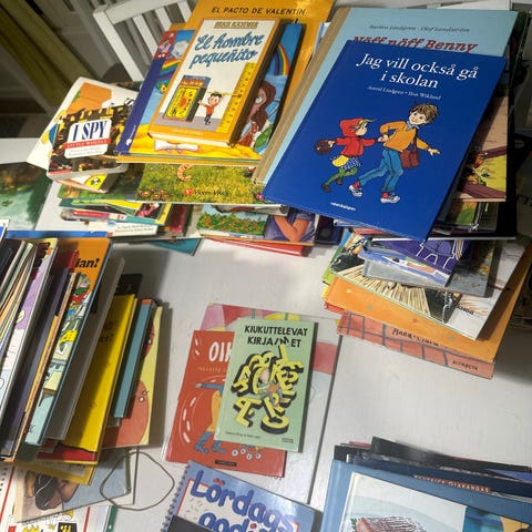 Kirjoja on eri-ikäisille lapsille ja kaikki siistissä kunnossa. Veloitan 0,50 /kpl.