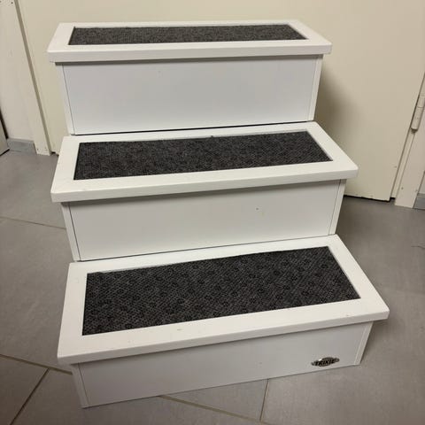 Mitat leveys 44cm, syvyys 57cm, korkeus 39cm. Askelmien korkeus 14cm ja 27cm.
