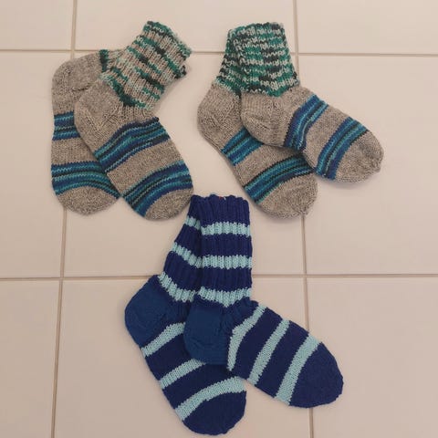 Myydään käsin kudottuja uusia lasten villasukkia. Koko 30-31. Pohjan pituus n. 19 cm.