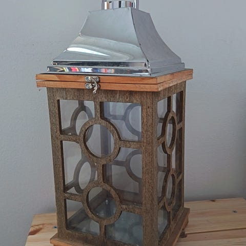 Myyn korkean, koristeellisen metallisen lyhty/amppeli telineen.