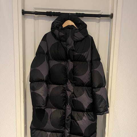 Marimekko Mangaani Kivet takki, väri mustaharmaa, naisten S. Reilu koko, olka-helma noin 102cm, kainalo-kainalo 58cm. Erittäin vähän käytetty, uutta vastaavassa kunnossa, kissatalous. Takissa on huppu ja etutaskut. Mieluiten nouto Salo / Perniö, kulkeutuu omien menojen mukaan myös Espoon tai Turun suuntaan, myös postitus mahdollinen, jolloin pk lisätään. Mmm