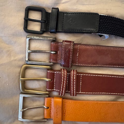 GANT Miesten vyö, jossa on vihreä punottu kangasosa ja ruskeat nahkakiinnikkeet. Vyössä on metallinen solki. Sopii miesten käyttöön.