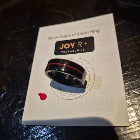 Kuvan mukainen älysormus. Noin 21mm sisäreikä. Mattahopean värinen raidalla. Akku kestää noin 4 vuorokautta. Älykellon tietoihin verraten melko samoja lukuja kertoo. Käytetty 2 latauksen verran, en vain tottunut käyttämään.