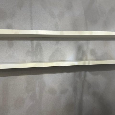 Melamiinipintainen lastulevy. Metalliset osat kiiltävät (hopea).