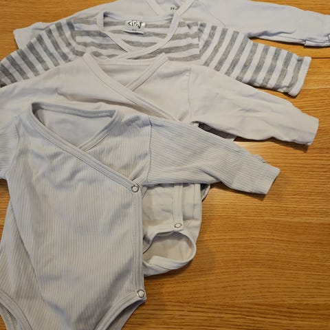 Neljä kietaisubodya, pesty Baby-pesuaineella, ei käytetty hajusteita.