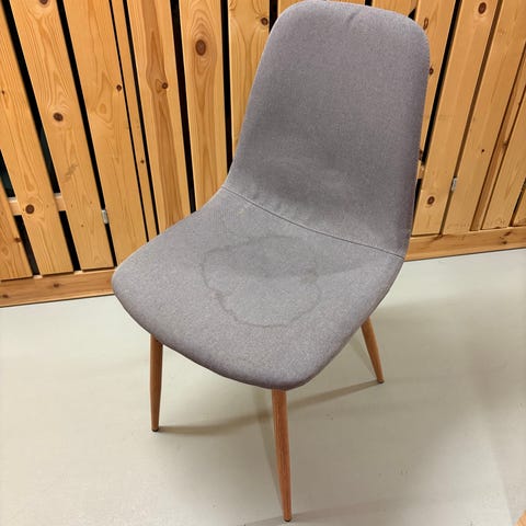 Annetaan punainen yksinäinen tuoli. Istuinosa ja selkänoja päällystetty punaisella kankaalla. Lemmikkitalous. Nouto Kurkimäestä.