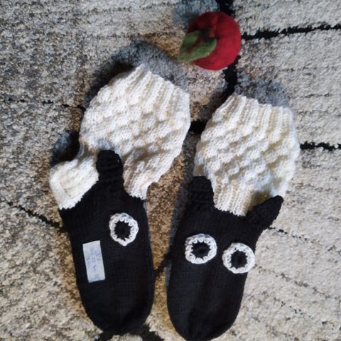 Käsintehty vauvan Late lammas sukat Nalle villalangasta.