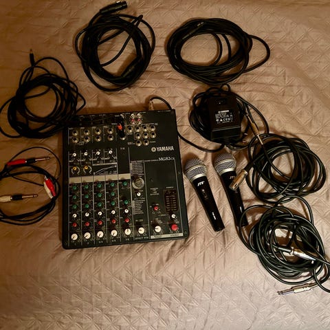 Mikseri ja kaiuttimet. Jotain piuhoja saattaa löytyä mukaan