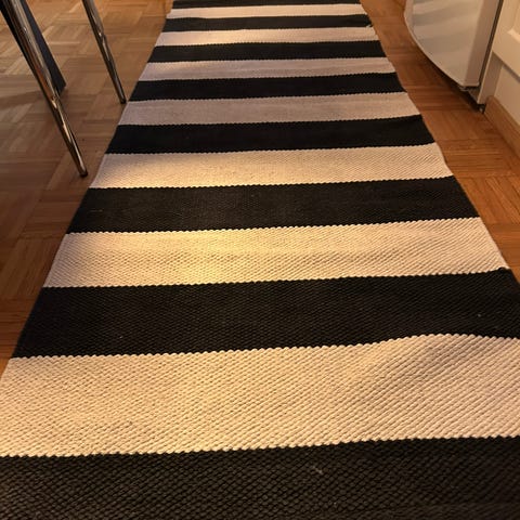 Hyvässä kunnossa mustavalkoinen raidallinen matto