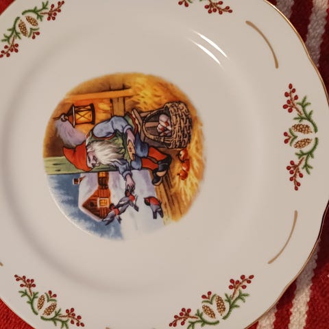 Perinnejoulu lautasia - alkuruokalautasia 12 kpl, yht. 120 euroa ja ruokalautasia 12 kpl, yht 160 euroa.Muutaman kerran käytetty. Halkaisija pienessä 22 cm ja isossa 27 cm. Postit päälle, mieluummin nouto, niin ei tarvitse pelätä hajoamista.