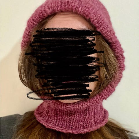 Itseneulomani balaclava huppu. Lanka on DROPSin baby alpakka x merinovilla, joka ei kutita.