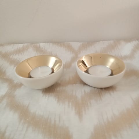 Hyväkuntoinen Arabia Kamelia tuikkukippo. Väri valkoinen, kullattu reunus.