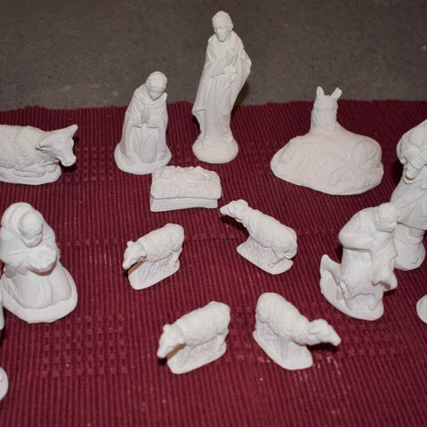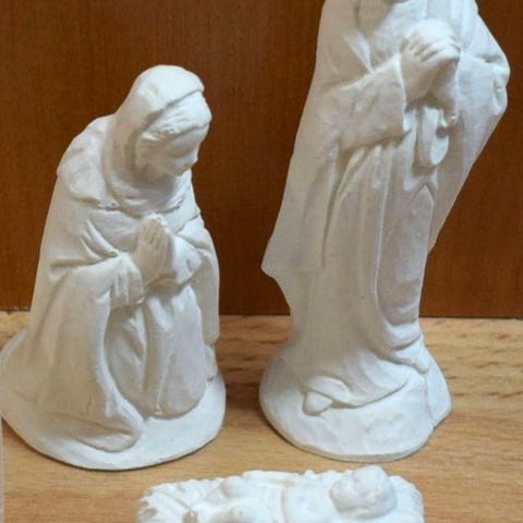 Voit aloitta jouluisen seimiryhmän tekemisen maalaamalla nämä kipsit. Setissä on: