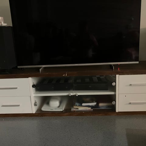 Tv taso ladikannella,hyväkuntoinen väri keltainen/valkoinen,lasi kirkas