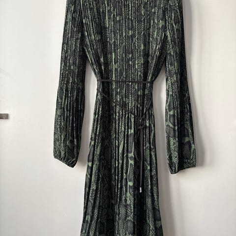 Hugo Bossin vihreän värinen naisten mekko, koko 36. Mekossa on vyö ja lyhyet hihat, materiaali on polyesteri.