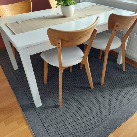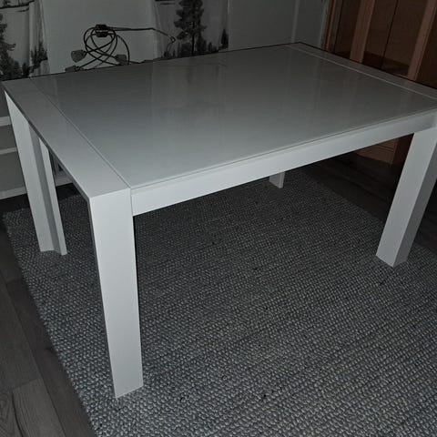 Jysk 2vuotta sitten ostettu ruokapöytä, hyväkuntoinen. tuolit ei kuulu mukaan. Pöytälevyn syvyys 80cm mutta jaloista mitattuna 85cm. Pöydän pinnassa naarmu joka näkyy viimeisessä kuvassa. Vain haku.