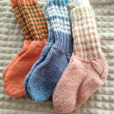 Konepestävä Nalle villalankaa, käsin kudottu, pohjan pituus 12-13 cm. Hinta 3€/pari, postitettaessa kulut ostajalle. Vain turkoosit jäljellä.