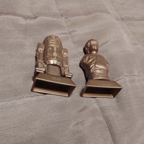 Myyntiin uudet avaamattomissa paketeissaan olevat Star Wars -figuurit (Grogu, Ahsoka Tano ja The Mandalorian) settinä.