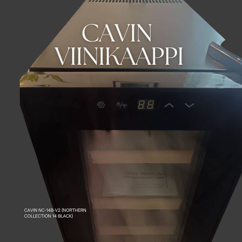 Vähänkäytetty reilunkokoinen viinikaappi hyvillä ominaisuuksilla,soveltuu säädettävien lämpötila-alueiden vuoksi puna ja valkoviinin säilytykseen.