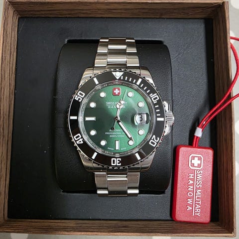 Swiss Military by Chrono rannekello kaupan. Musta teräsrunko, safiiripinnoitettu lasi. Vesisuojattu 50m asti. Ajanotto. Kuin uusi. Takuuta jäljellä vuodelle 2027 asti.