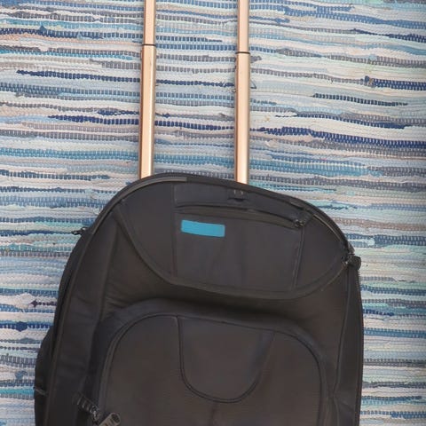 Kulkee kahdella pyörällä. Vetoketjut ovat ehjät, sisus siisti. Kevyt.